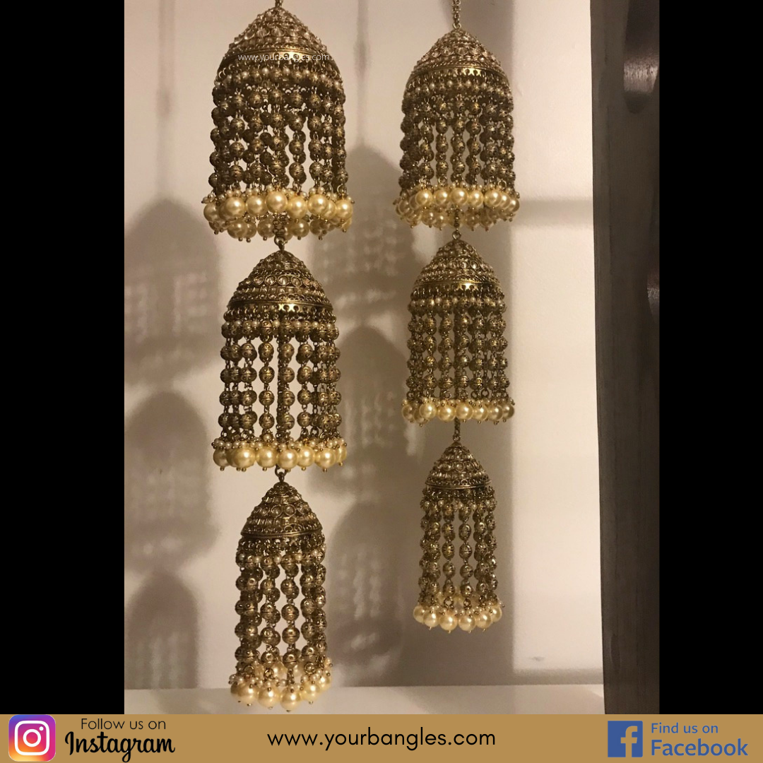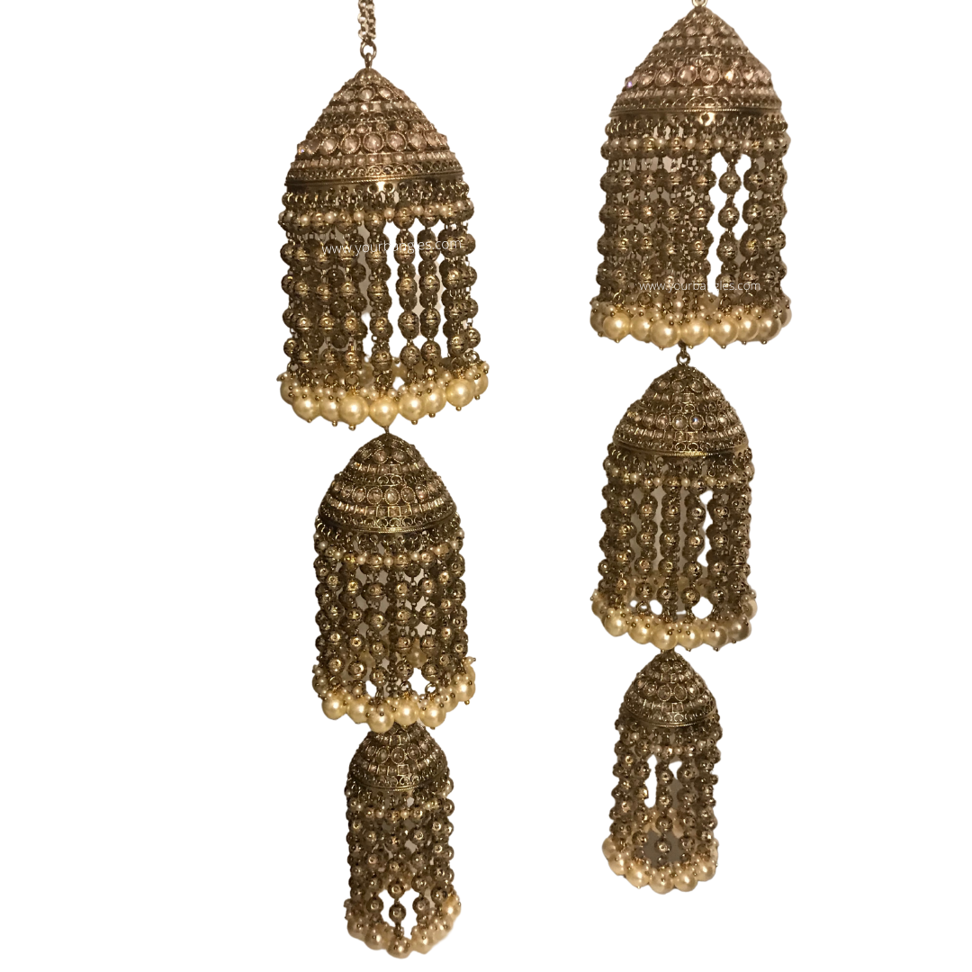 MAHEK Golden 3 Tier Jhoomer Kaleere