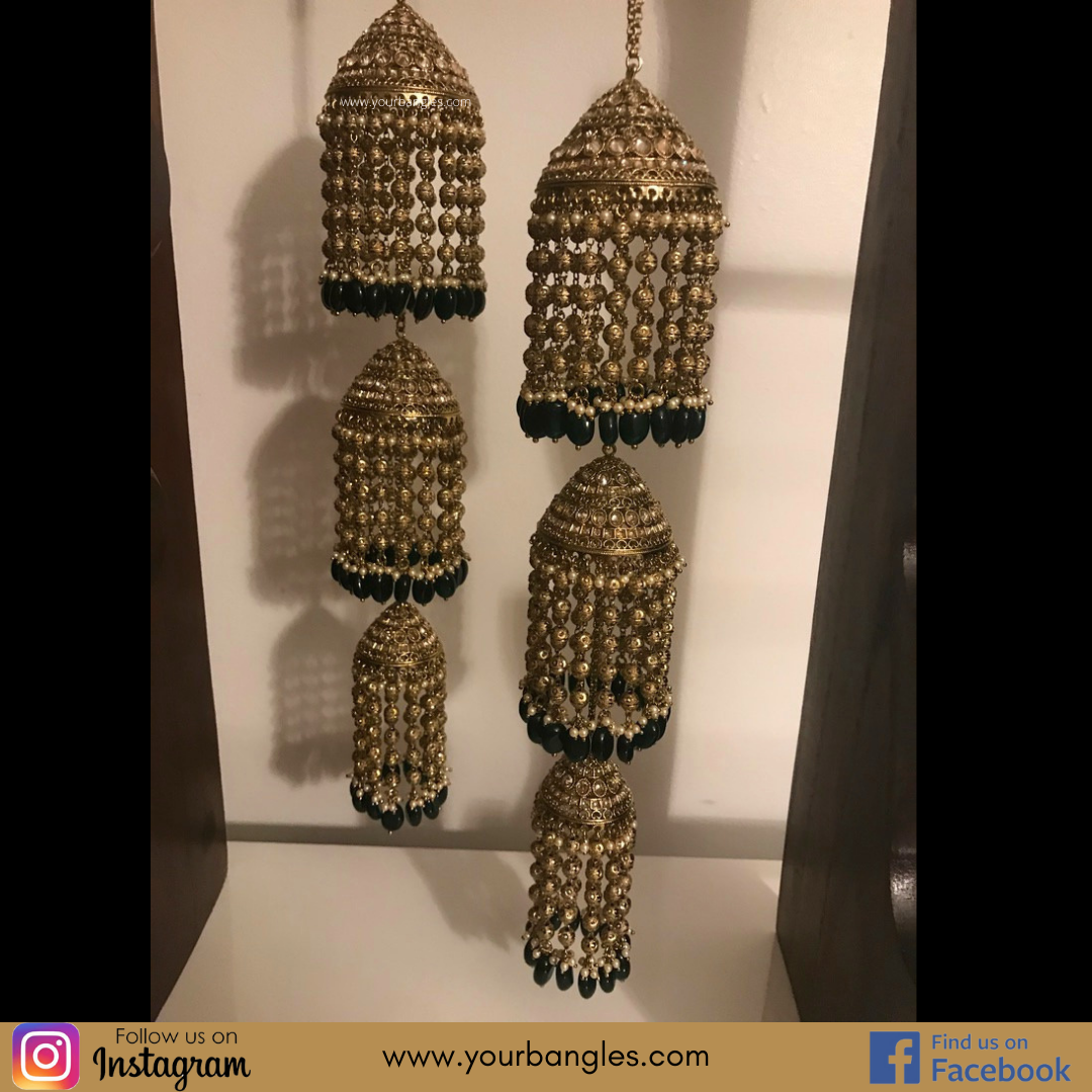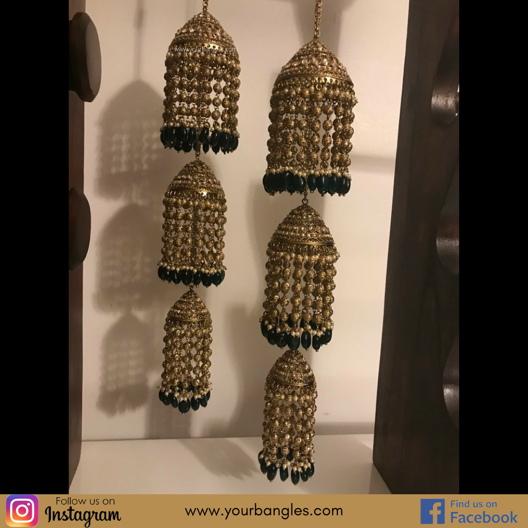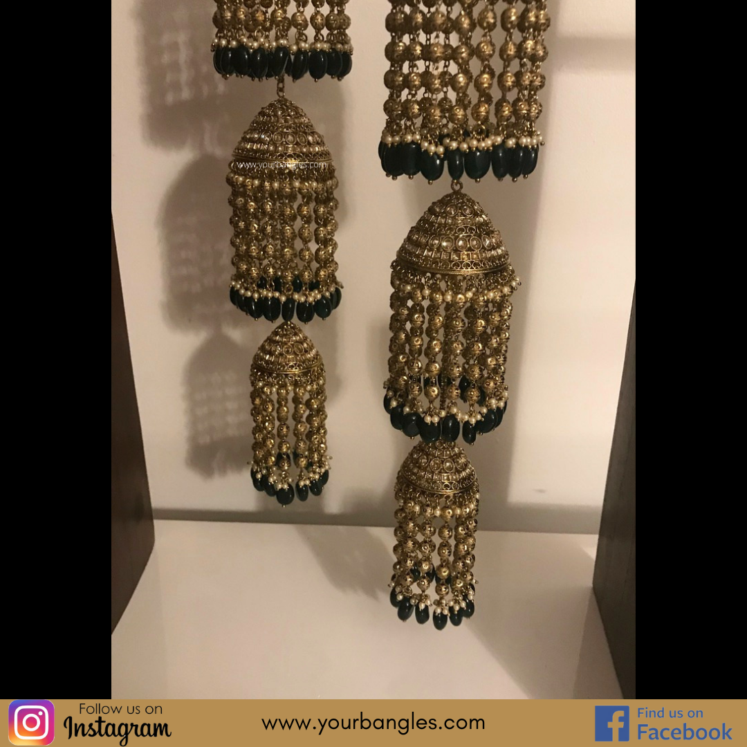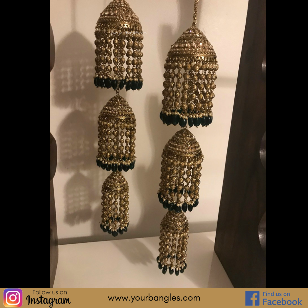 MAHEK Golden/Emerald Green 3 Tier Jhoomer Kaleere