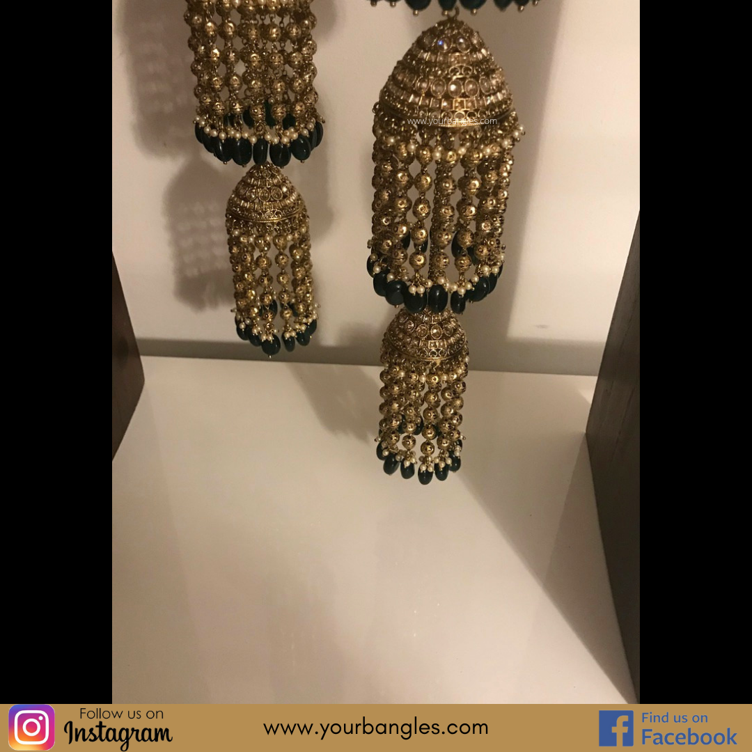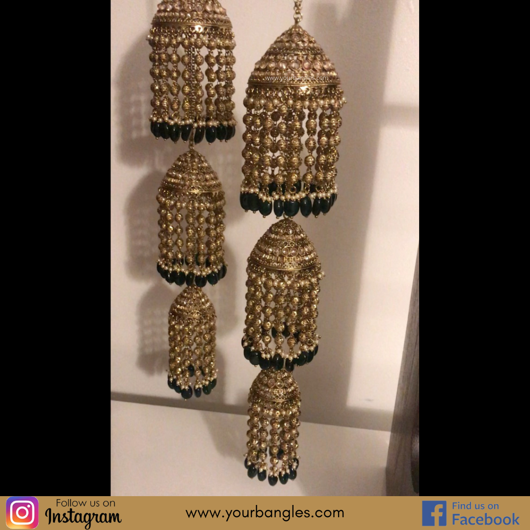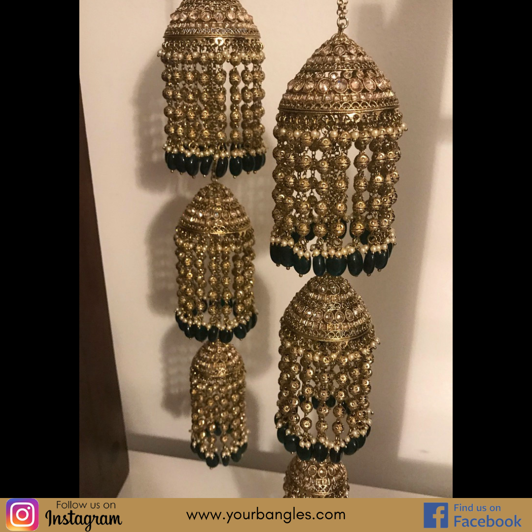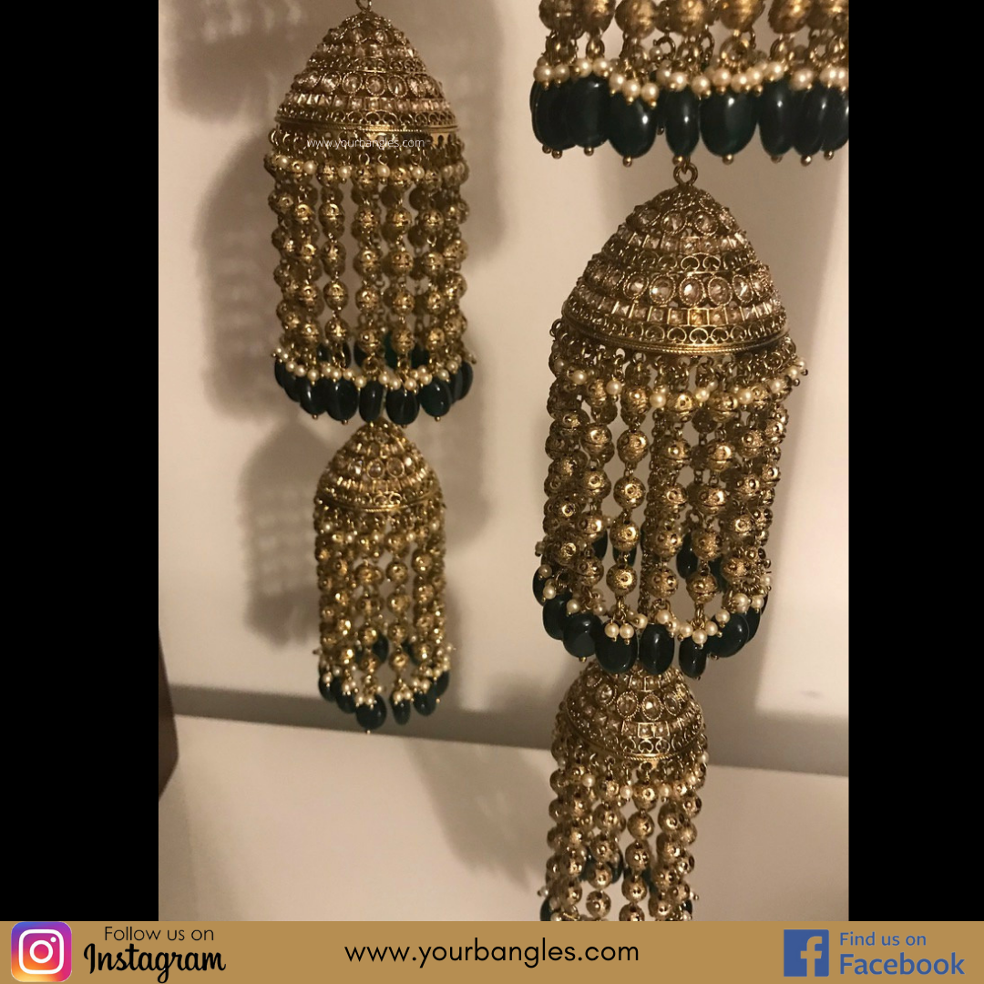MAHEK Golden/Emerald Green 3 Tier Jhoomer Kaleere