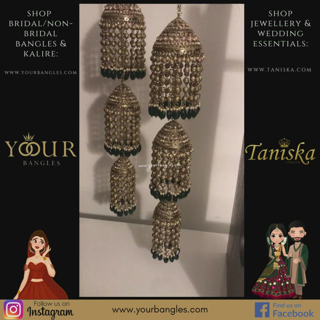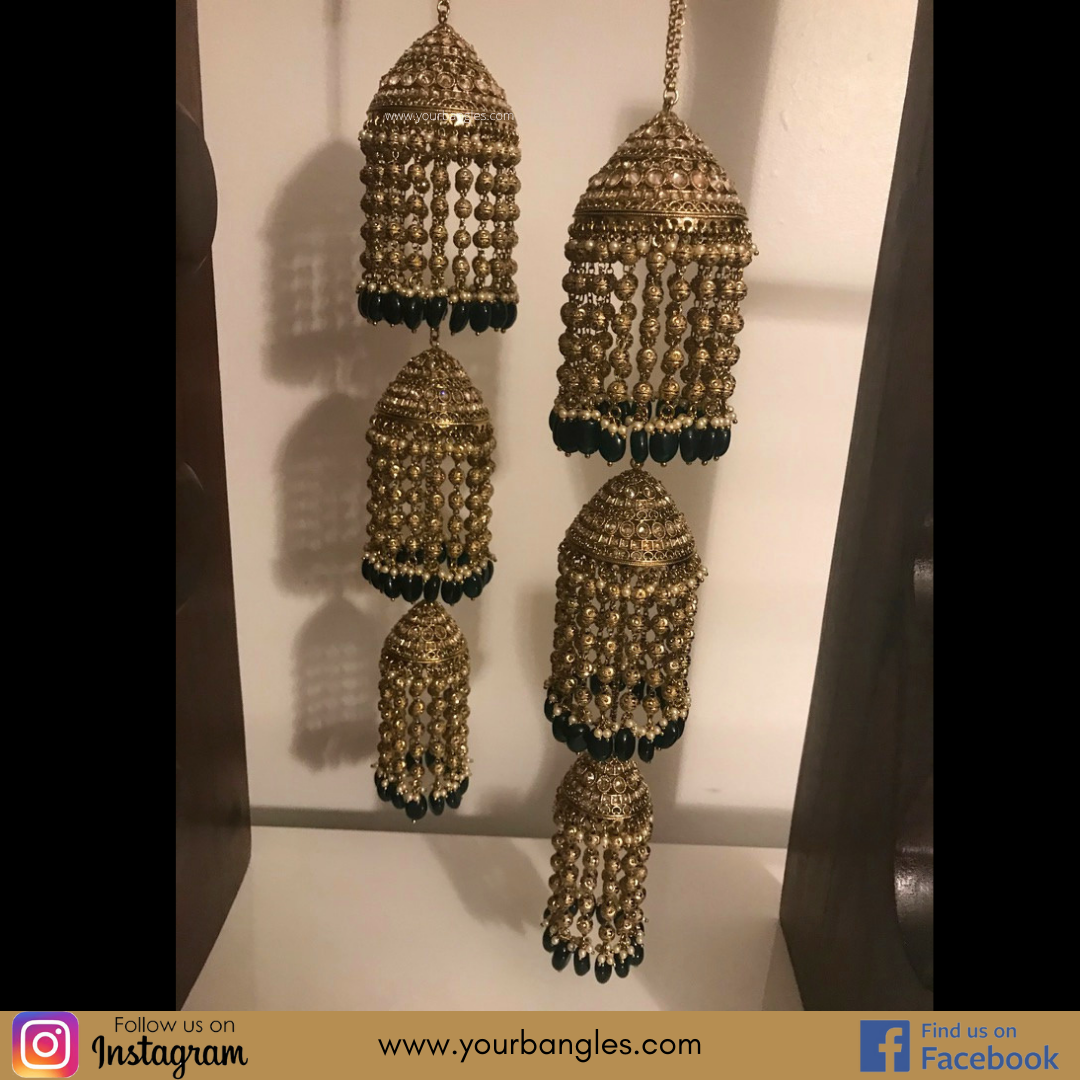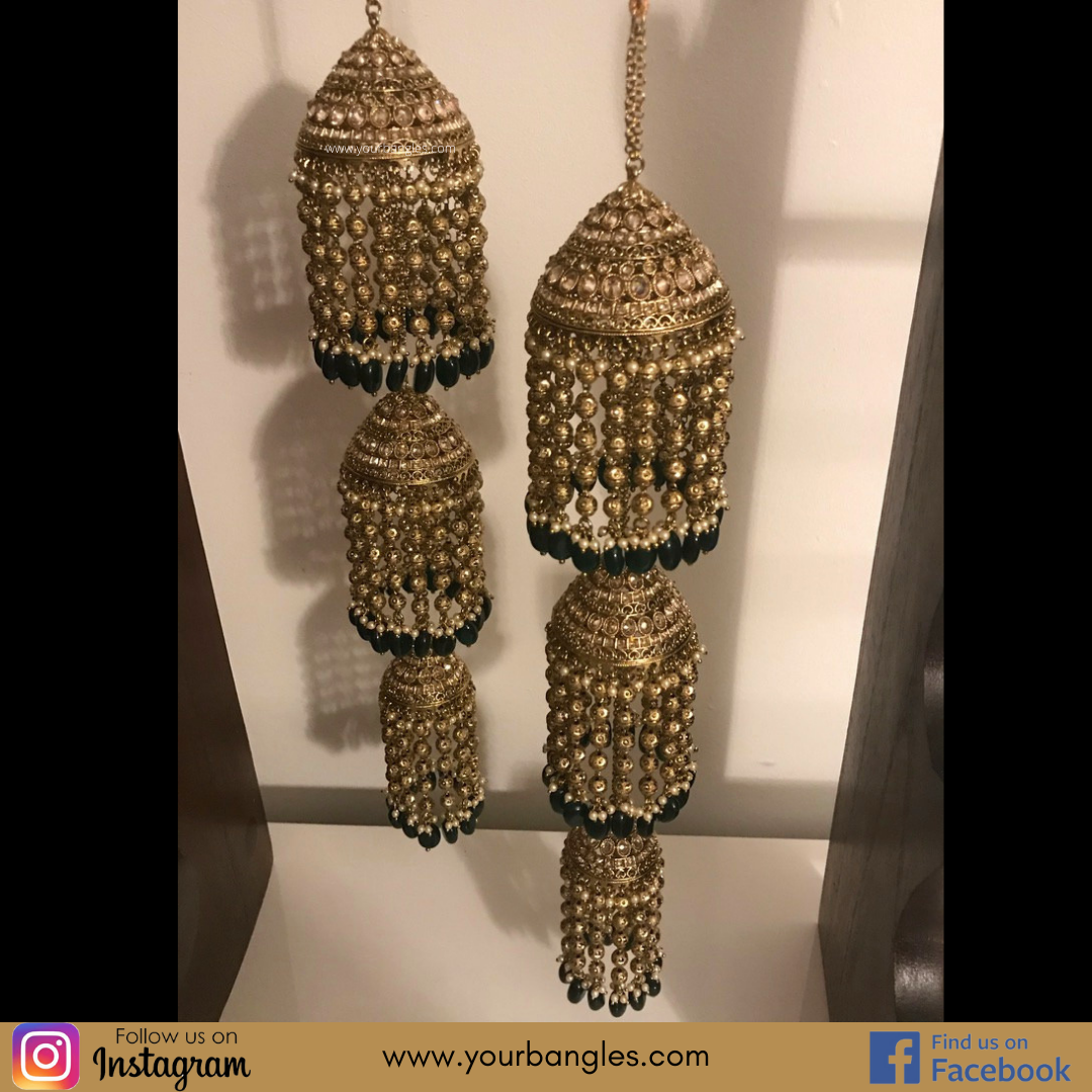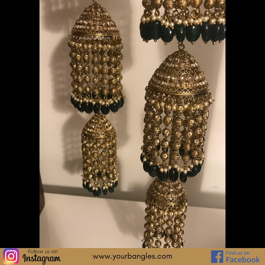 MAHEK Golden/Emerald Green 3 Tier Jhoomer Kaleere