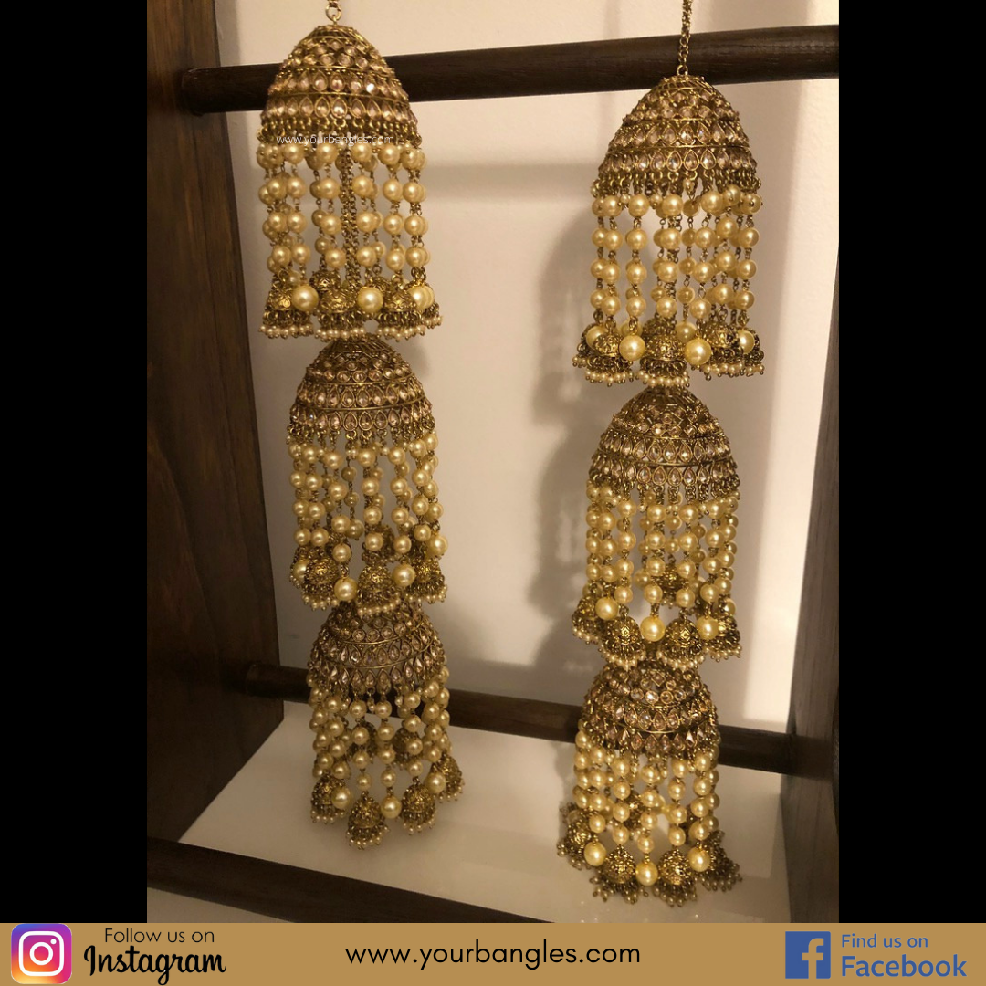 Design: 3 Tier Jhoomer Kaleere With Pearl Drop